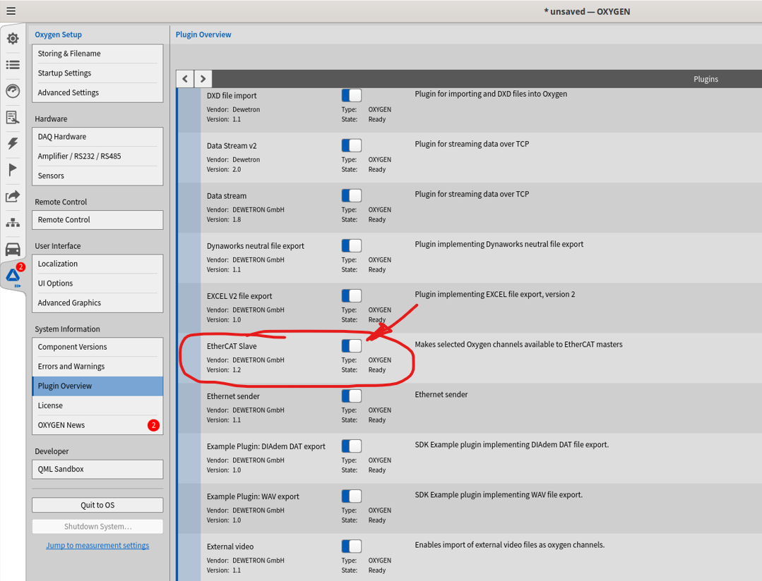 Here are the steps after the installation of the EtherCat drivers to check if the EtherCAT plugin in OXYGEN is working: